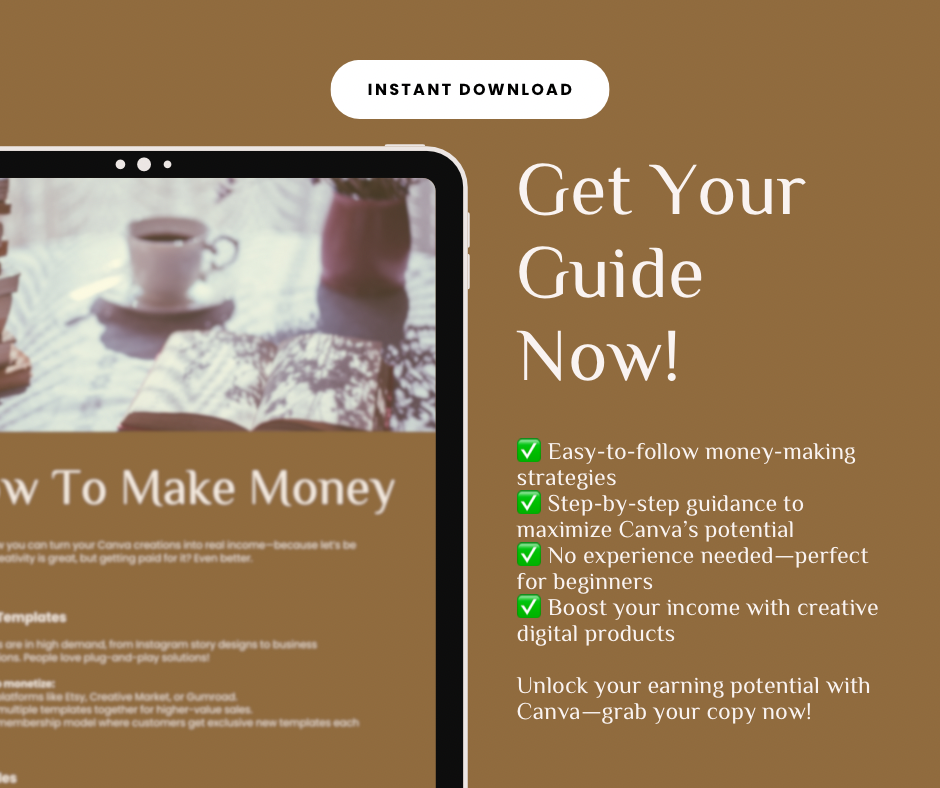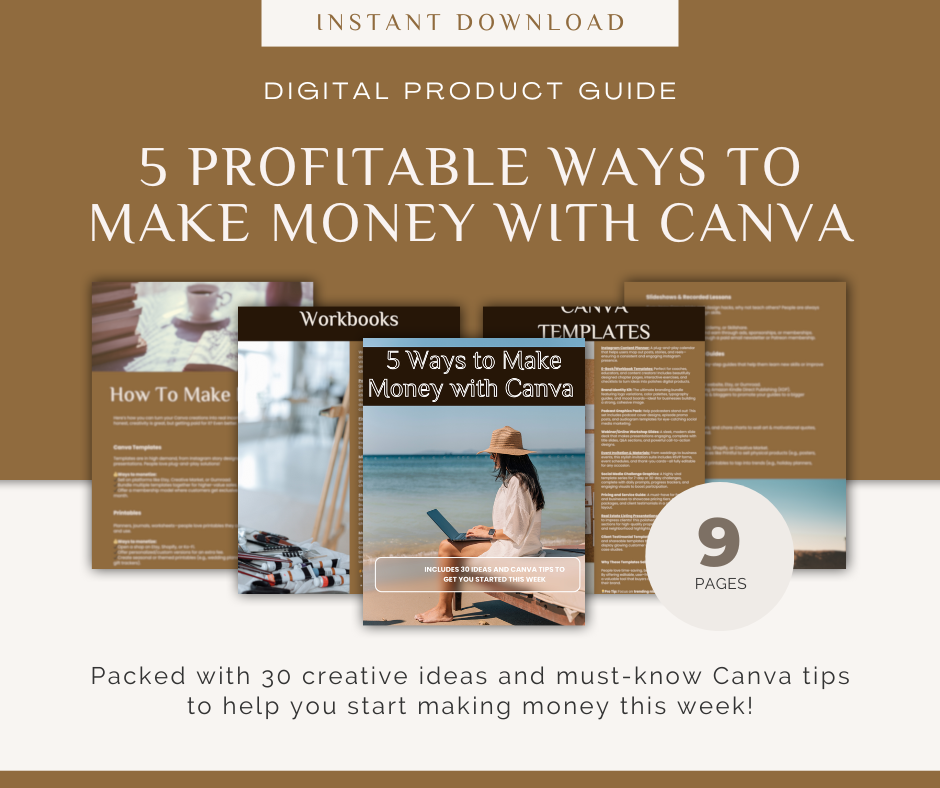 This digital guide walks you through five proven ways to make money with Canva, including selling templates, creating digital products, and more. Whether you’re a beginner or looking to expand your online business, this guide is packed with actionable tips and strategies to help you start earning.